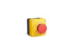 P1EC400E40K EMAS SARI SİYAH PLASTİK KUMANDA KUTUSU TEKLİ STOP EMNİYET ETİKETLİ